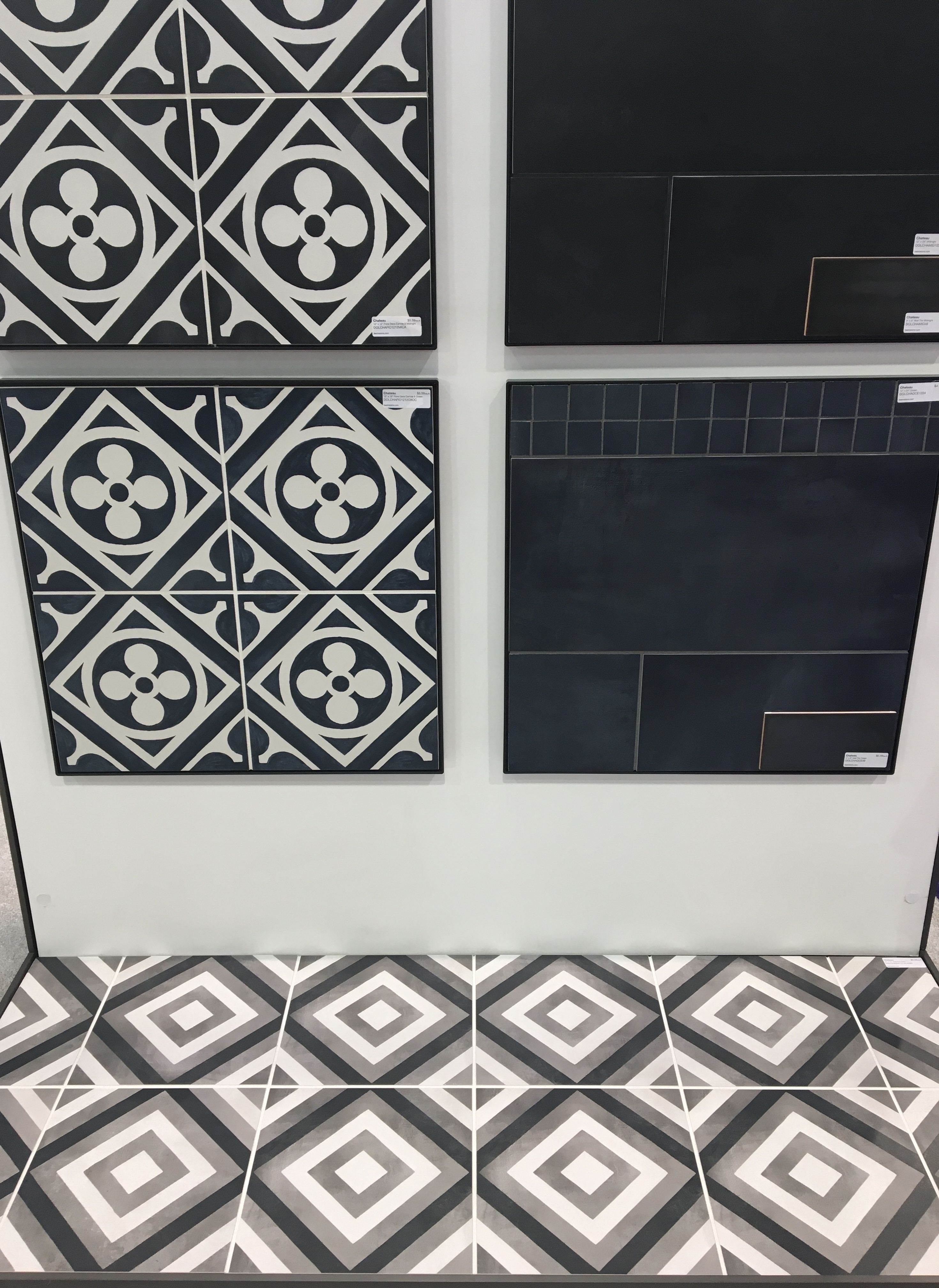 Tile and Color Options fall into 2 categories. Blue and green tones are found throughout the show. Watery finishes in tile continue to dominate and we saw lots of new 4″ square additions. This shape is so old school that it looks completely new. The other prevalent color category is black and white. Matte black finishes are all over countertop and tile introductions and they look very, very cool. However, a note of caution because matte black shows oil- fingerprints, olive oil, soap residue. If you are bothered by ‘smears’ on surfaces, you might not enjoy a matte finish. Mixing matte black with white offers contrast and brightness. Large (6″) hexagon tiles are another cool shape that is having a moment. So, yes, subway rectangles which have been everywhere, will slowly fade for now.