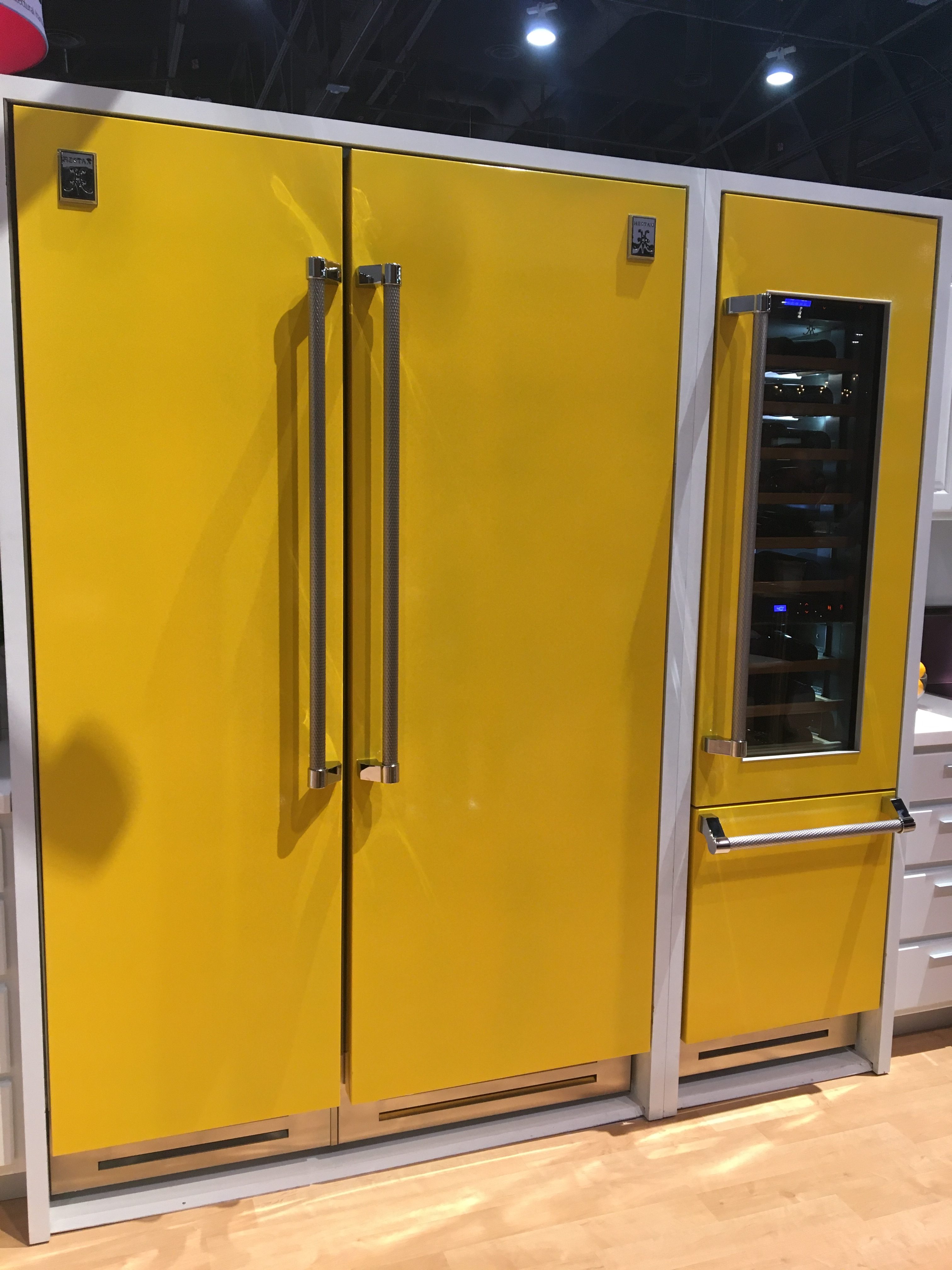 Appliances. Yes, we are ever so slowly moving away from the All White Stainless Steel kitchen. Every major appliance company continues to expand their color offerings. We saw everything from pale pink to dark teal and even printed metal! My Instagram photo of the printed stove was controversial. Whether you are a fan or not, I applaud the innovation. As we stay in our homes longer, the idea of adding a colorful appliance is gaining ground. Commercial grade appliances continue to dominate with the addition of a nice selection of ‘minis’ at 24″, which are super exciting. It’s starting to dawn on companies that many people live in apartments or want a small 2nd kitchen in the basement or parent-in-law suite. High end 24″ appliances are perfect for these smaller spaces.