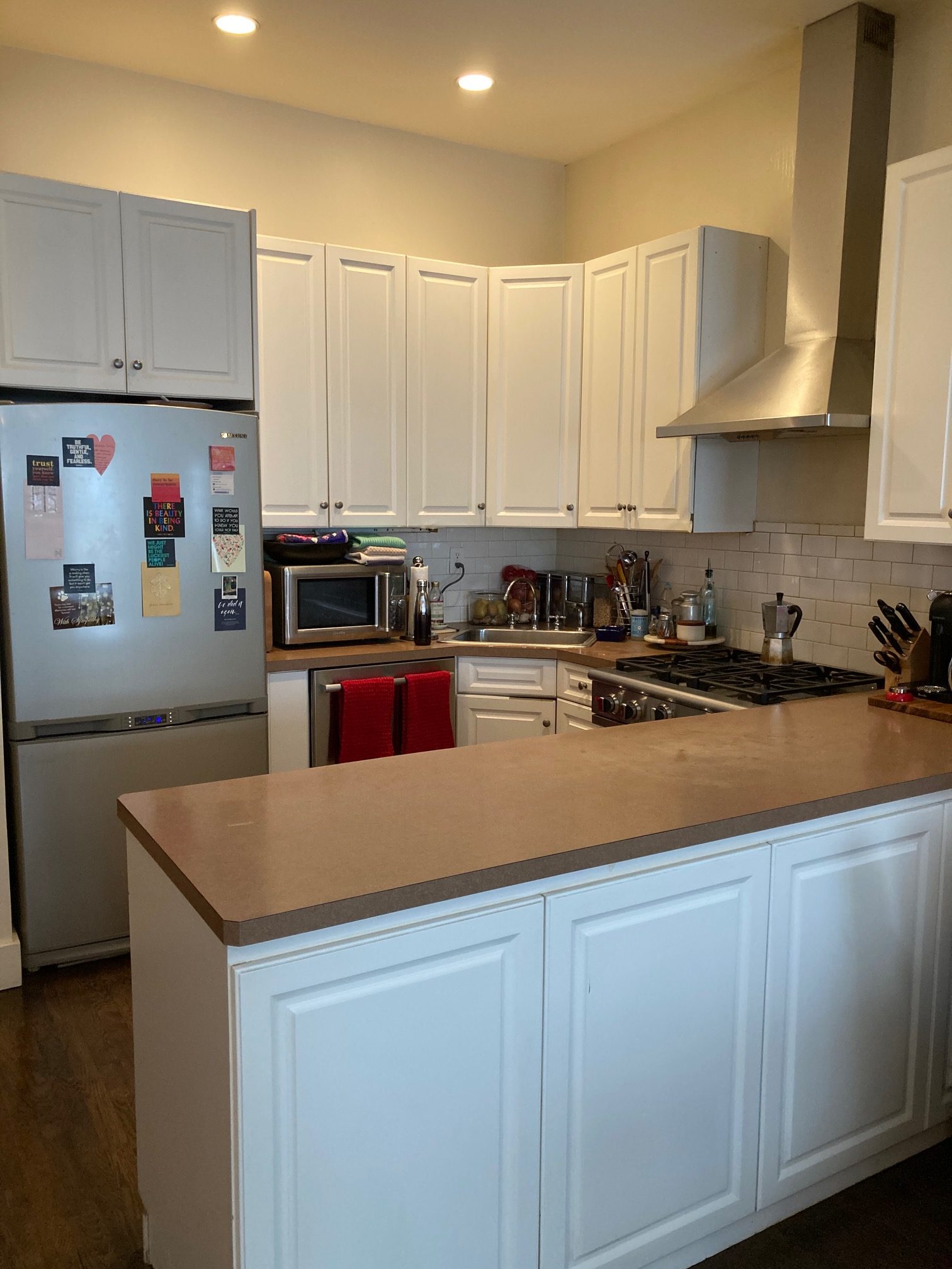 1. Extending the peninsula 8″ and grabbing dead space by the wall allowed an extra cabinet