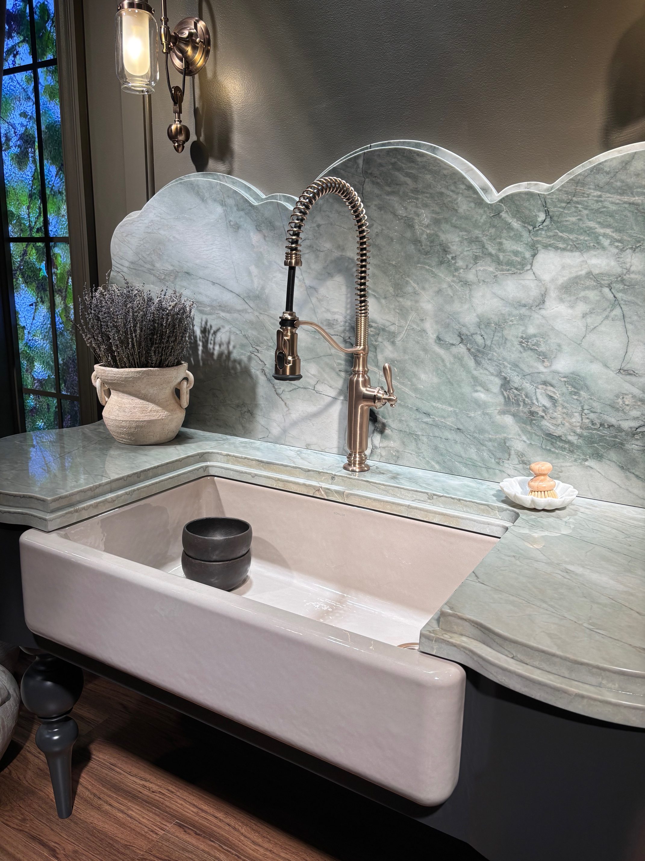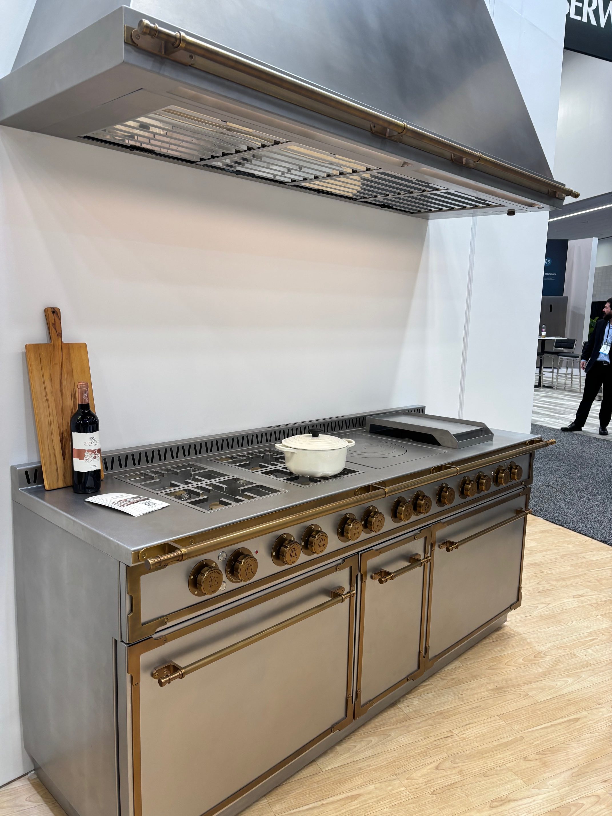 There were bold color cabinetry and appliances throughout the show, but none more than at Cafe where their kitchens were painted out in greens, pinks, coral, blues and purples. True Residential had a gorgeous rose kitchen with more color shown on their spectacular refrigerators- apricot and violet were especially pretty. All of the Italian companies (Officine Gullo, Smeg, Bertazzoni) had a range of bright colors, while L’Atelier Paris offered a luxurious burnished gold. All of this built on the idea that your kitchen should both inspire you and bring you joy.